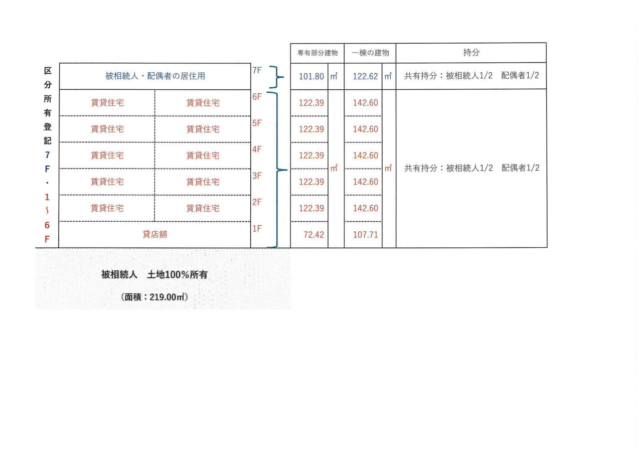 7階は被相続人と配偶者(長男も同居)の居住用として使用しており、