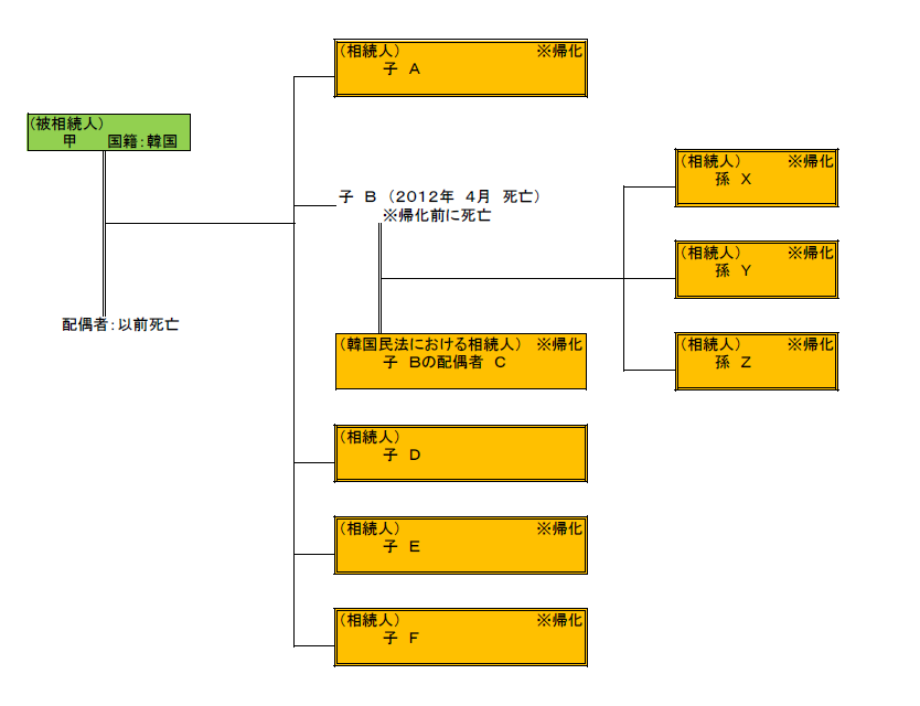 法定相続人は7名 子A・子D・子E・子F・孫X・孫Y・孫Z
