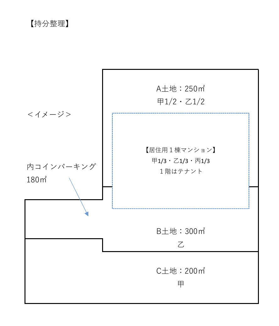 250㎡のうち125㎡と、120㎡が持分であり、さらに125㎡のうち1/3と、