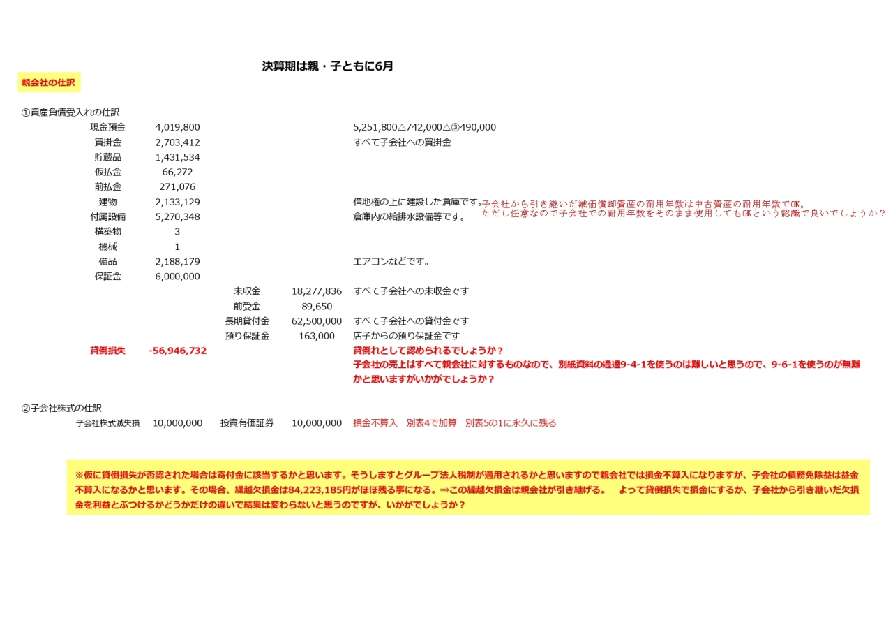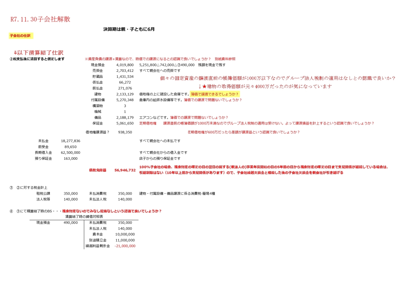 [soudan 18414] 子会社清算に伴う貸倒損失他