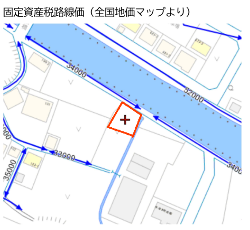 ①現地を調査したところ、当該土地は固定資産税路線価34,000円が