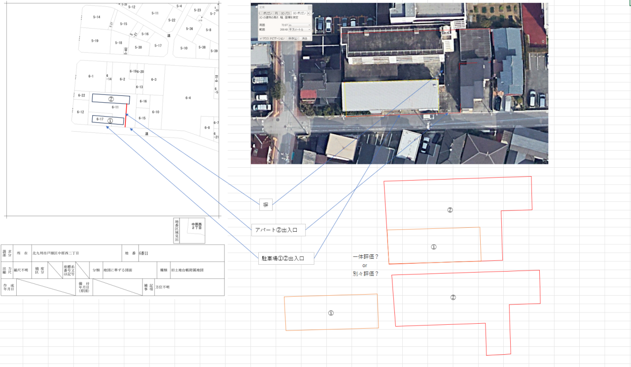 上記土地には添付資料に記載のように①賃貸物件(事務所用)で一