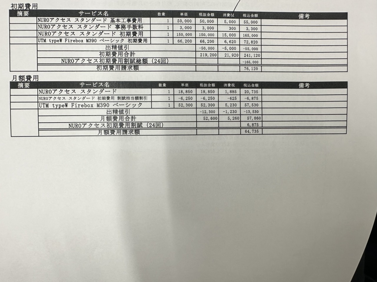本店移転した際に光の開通を工事を行いました。