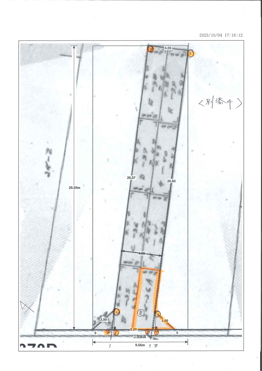 「⑧-⑨」間となるのか、①と④からセットバック部分への垂線接
