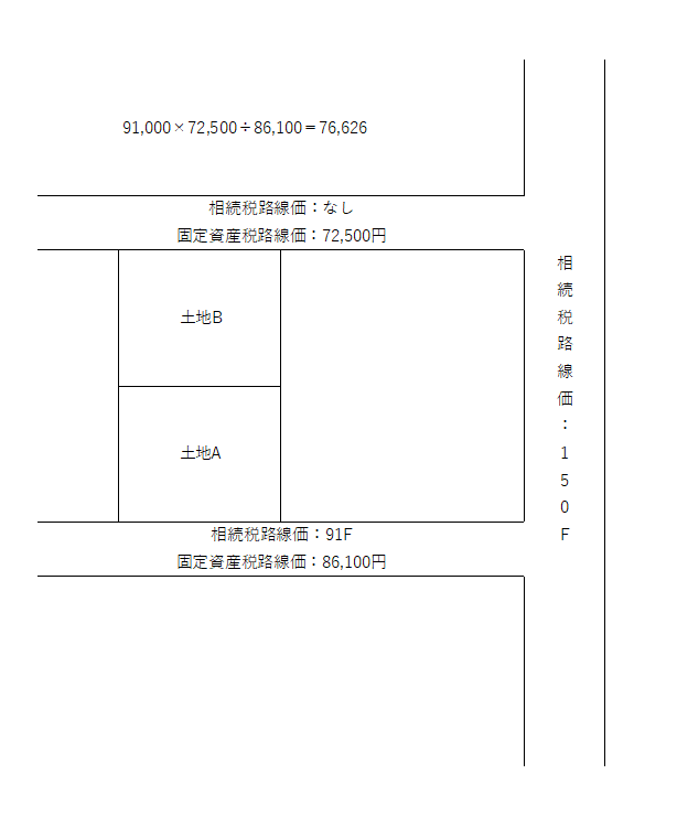 計算式:土地Aの相続税路線価×土地Bの固定資産税路線価÷土地