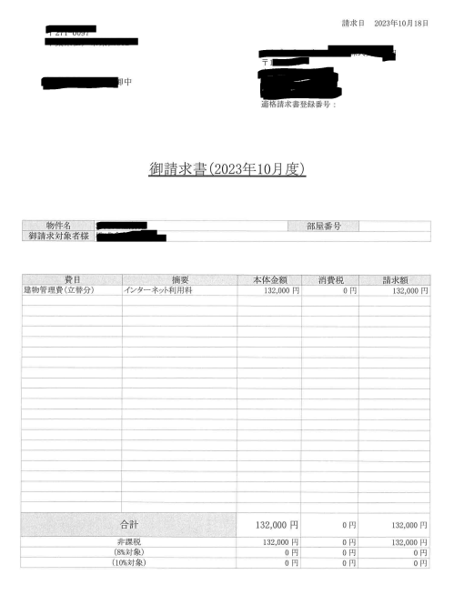 ・契約書にはインボイス番号が記載され毎月同額を管理会社