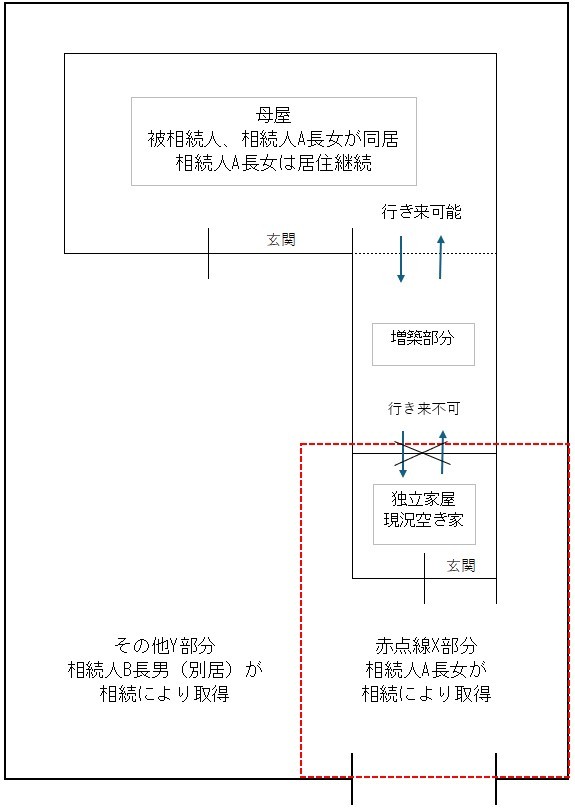 今般、遺産分割により、その独立家屋部分の土地約100㎡(X部分)を