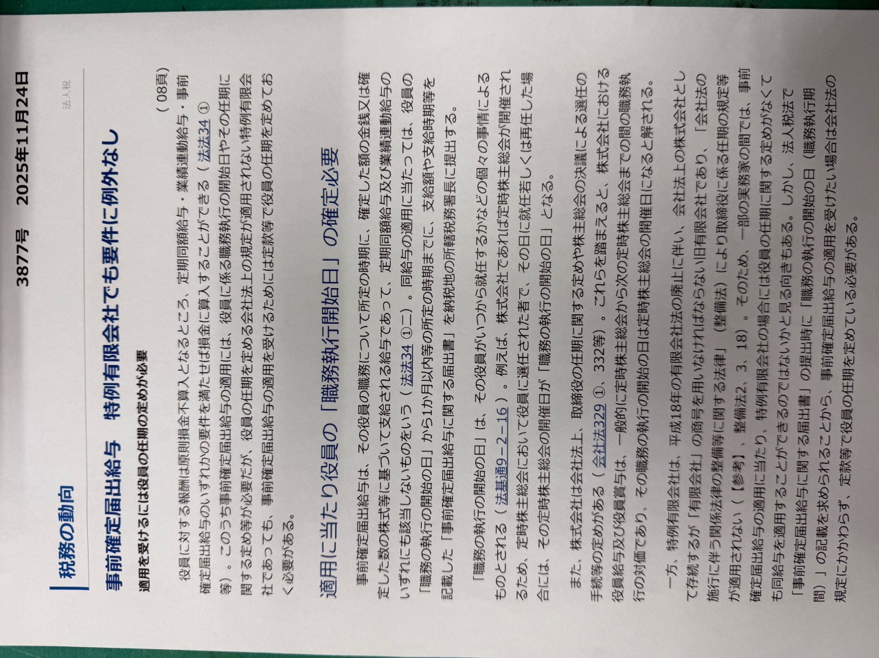[soudan 16363] 特例有限会社が提出する事前確定届出給与