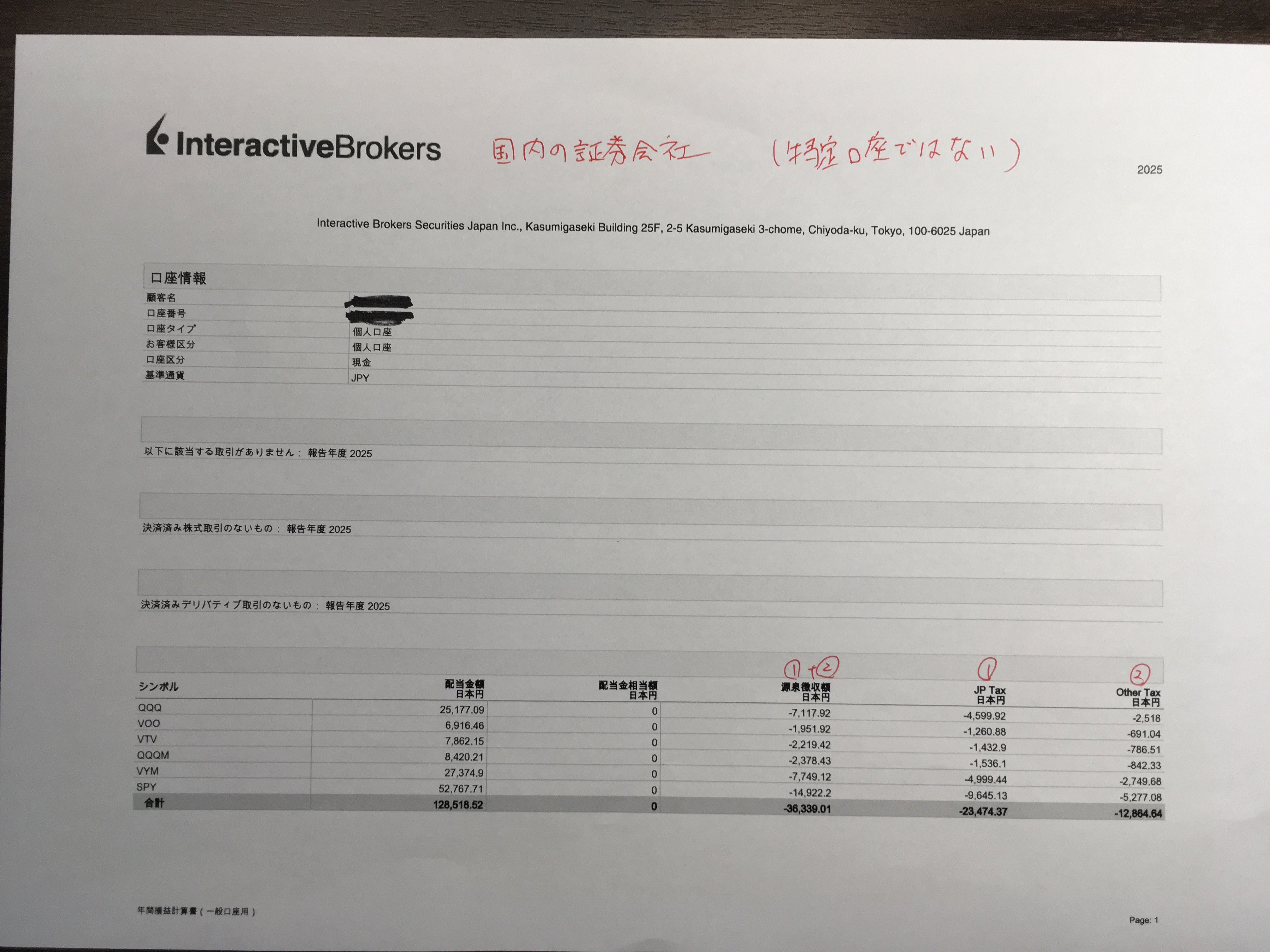 ・インタラクティブブローカー証券(国内の証券会社)の配当金の計算書に
