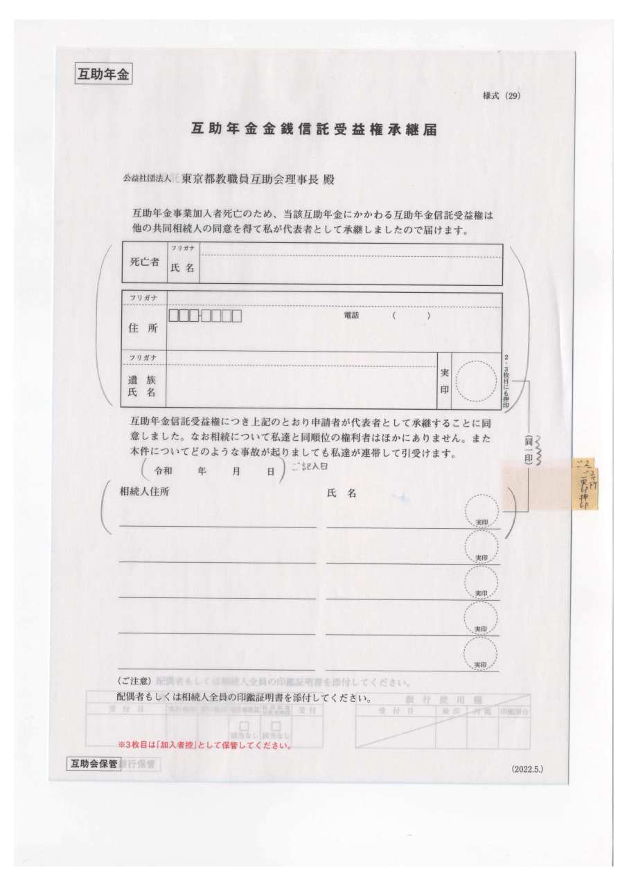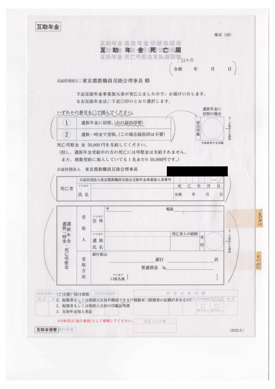 の内容は東京都教職員互助会の互助年金であろうことが分かりまし