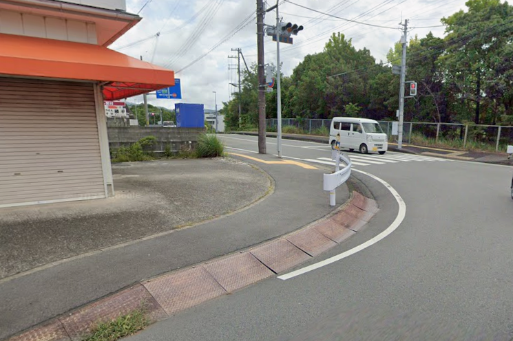 当該土地は添付の写真のようにカーブ上に道路と接しています。
